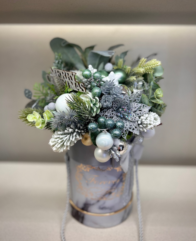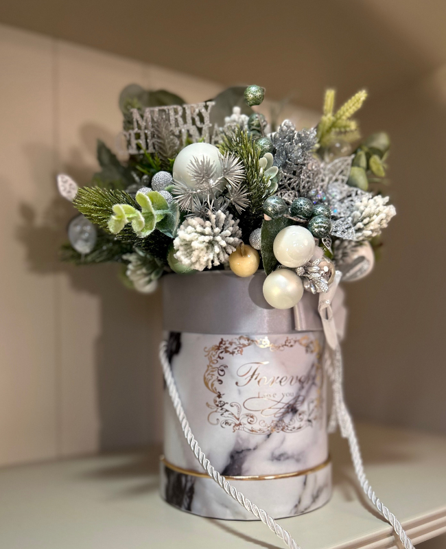 Chaque élément a été sélectionné pour son élégance et sa finesse, créant une pièce décorative à la fois luxueuse et intemporelle. Présentée dans un pot marbré au design raffiné, cette composition apporte une signature décorative exclusive, idéale pour sublimer un intérieur contemporain ou offrir un cadeau d’exception.