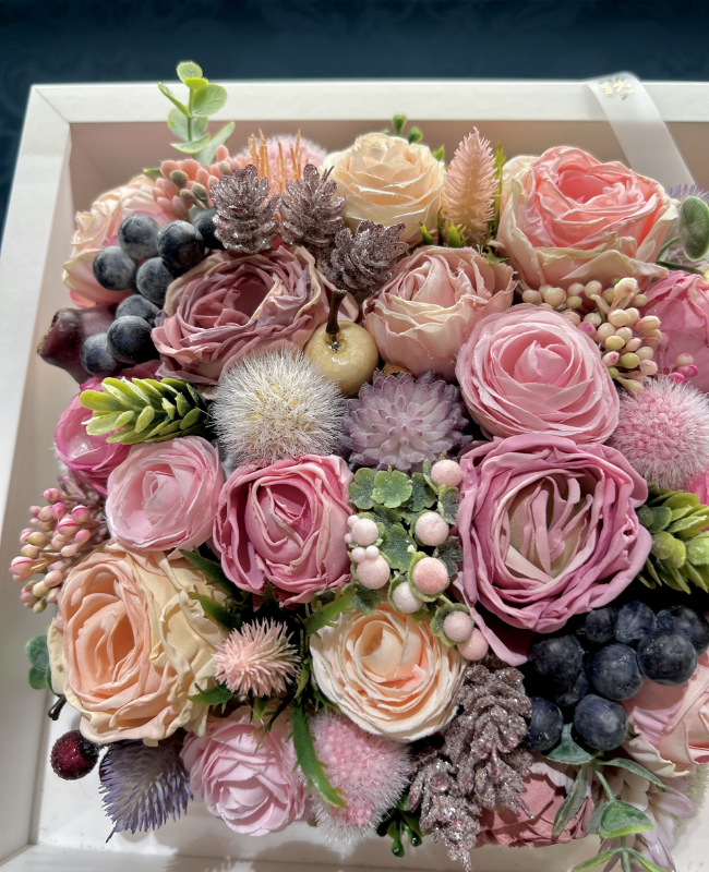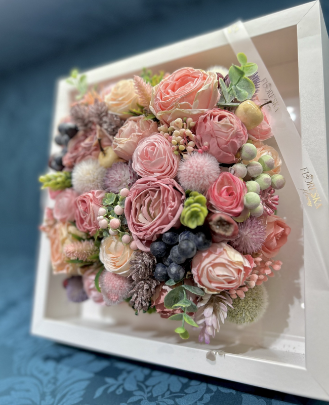 Chaque couronne, flowerbox ou cadre floral est entièrement réalisé à la main, avec le soin et la sensibilité d’un artisan qui veut transmettre plus qu’un bouquet : un instant d’émerveillement, un souvenir à chérir, une émotion à offrir.